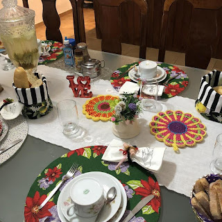 A mesa está linda, com cor e elegância. Os paninhos da Nina tornam o ambiente ainda mais caseiro e acolhedor!